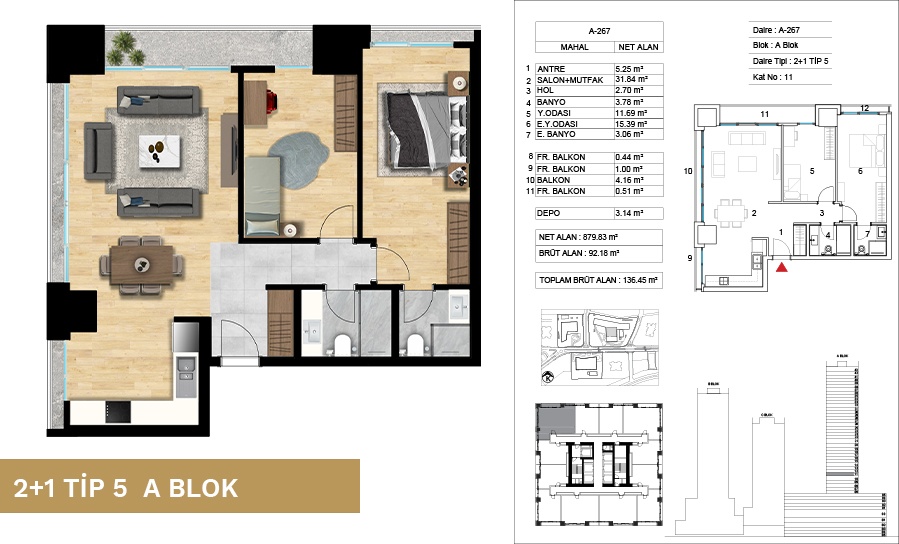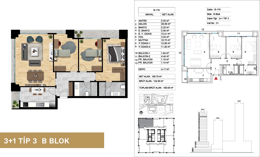 Rahatlığa ve şıklığa açılan kapılar Ataşehir Modern’in 3+1 dairelerinde.